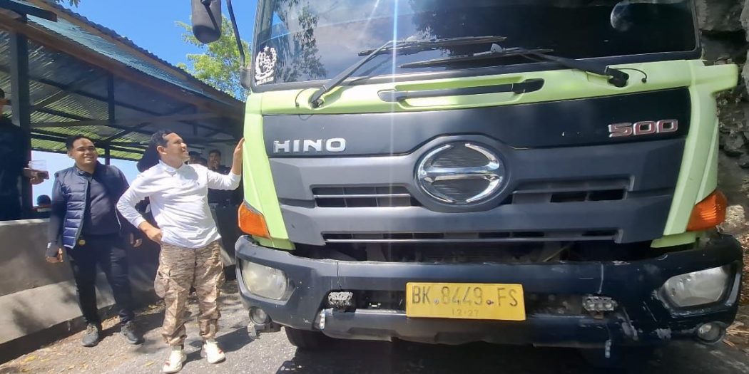 Ada dua truk berpelat luar Aceh yang disapa Wagub Fadhlullah. Satu berpelat BK dan satunya lagi BA.