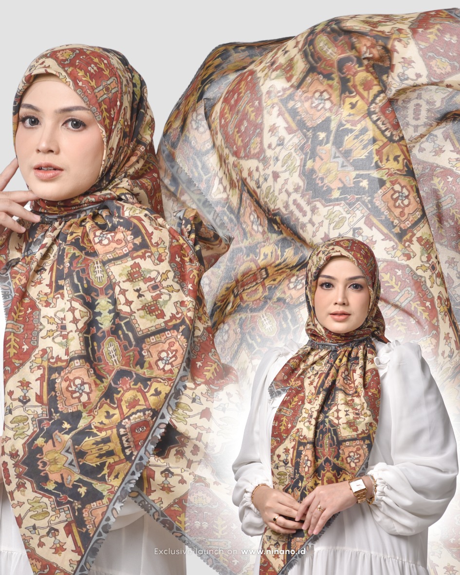 Ukuran hijab Ninano bervariasi 120 cm, 130 cm, 140 cm dan semuanya menggunakan bahan premium yang sama. Untuk ukuran standar bisa dibanderol dengan harga Rp. 185.000 saja.
