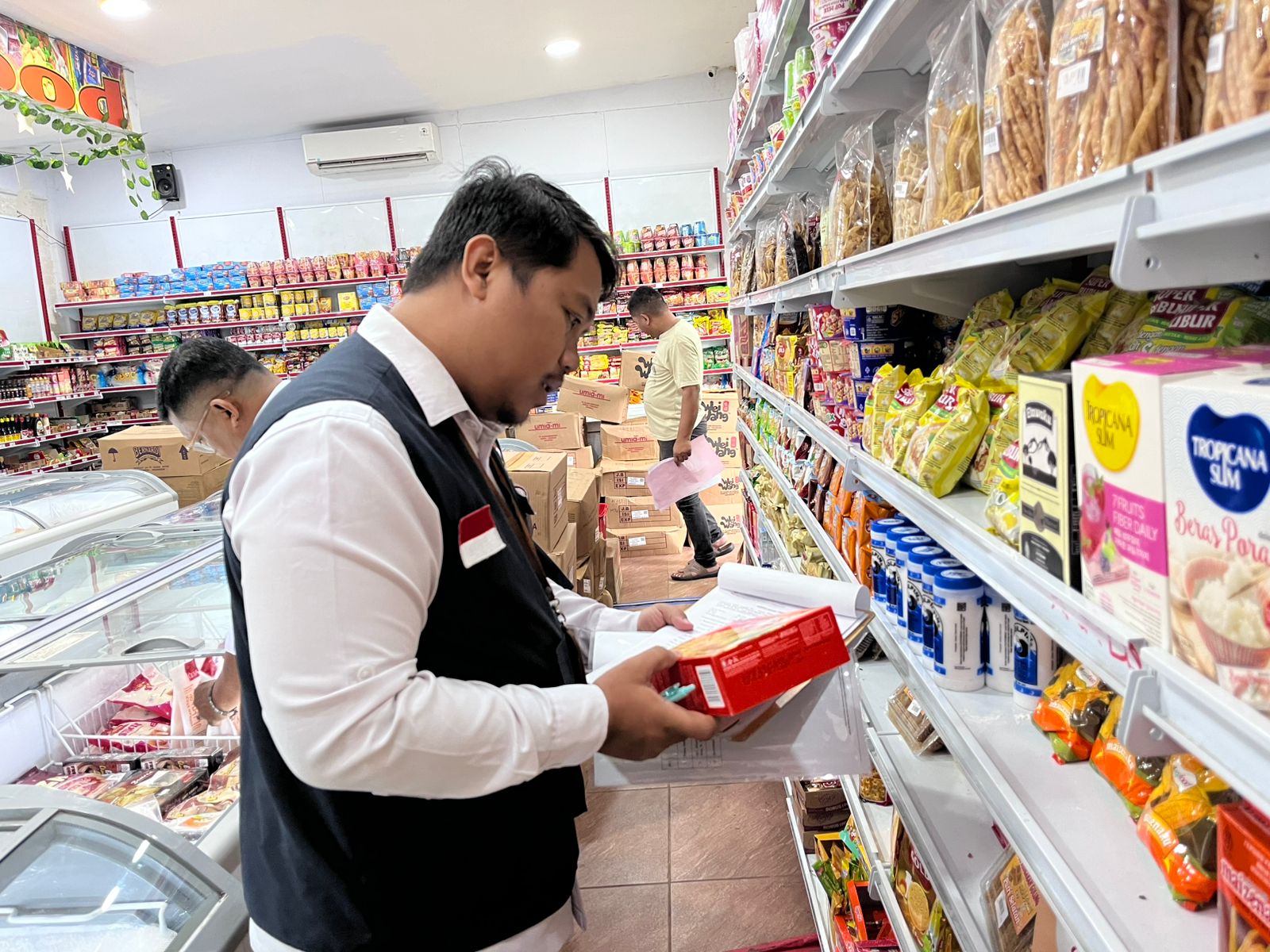 Pada tahap pertama, petugas memeriksa tiga sarana distribusi dan ritel pangan. Hasilnya, satu sarana masih ditemukan tidak memenuhi ketentuan, dengan temuan tiga item produk tanpa izin edar (TIE) serta dua item produk dalam kondisi rusak atau penyok. Produk tersebut langsung diturunkan dari etalase untuk dimusnahkan, serta pelaku usaha diberikan pembinaan agar tidak kembali memperdagangkan produk yang tidak sesuai ketentuan.