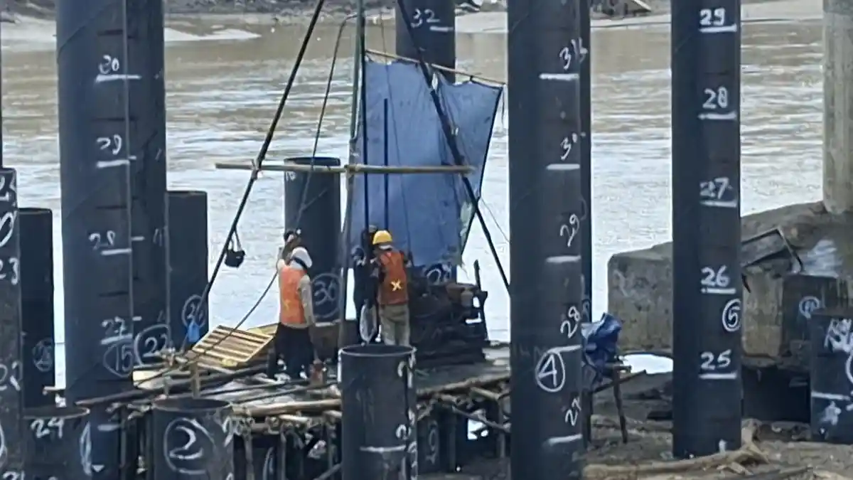 Abutment serta tiang tengah jembatan sisi barat sudah dilakukan pengecoran, sementara sisi timur mulai memasuki tahap pengecoran.